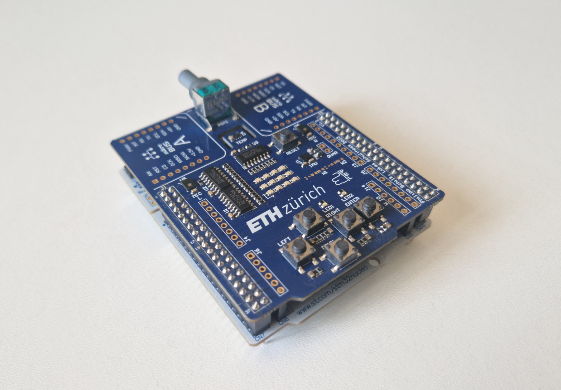Instead, we opted to develop a "shield" that is connected to an otherwise bare-bones NUCLEO-L476RG